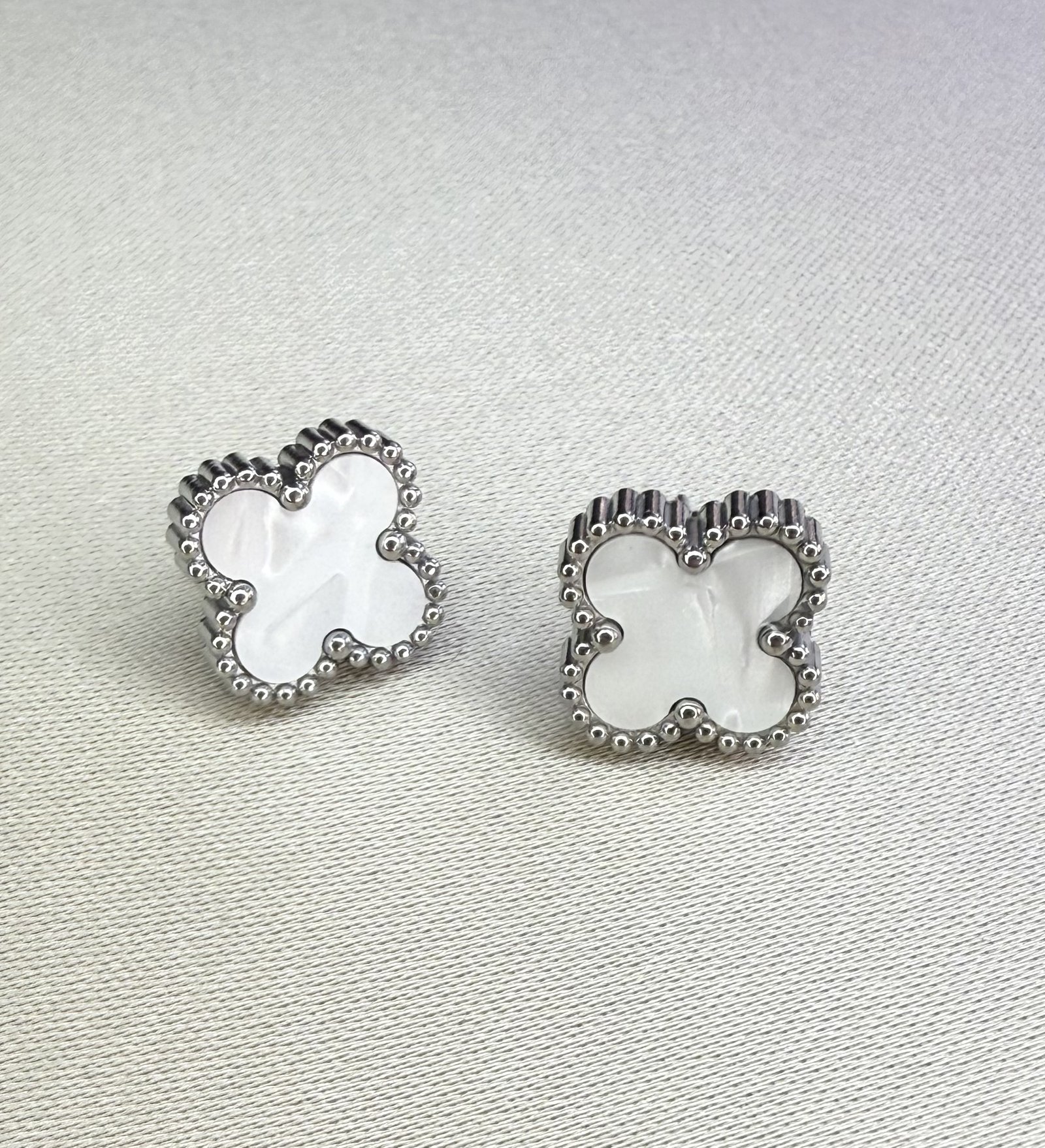 Naušnice s bijelom djetelinom od nehrđajućeg čelika u srebrnoj boji donose čistoću i eleganciju. Bijela boja simbolizira jednostavnost i svježinu, savršena je za svaki dan, ali i kao poseban detalj uz svečane kombinacije.
