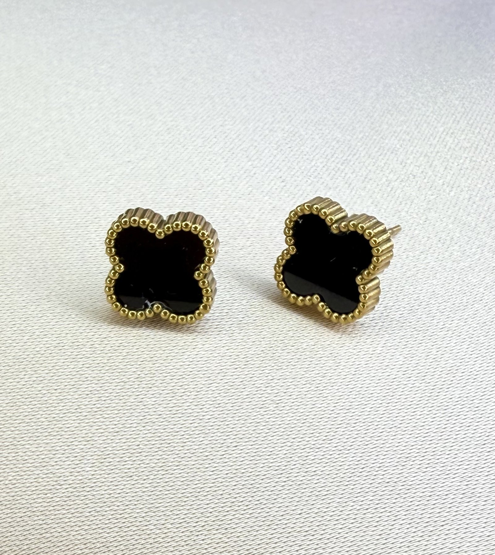 Naušnice s crnom djetelinom u pozlaćenom čeliku odišu elegancijom i mistikom. Savršen su izbor ako voliš nakit koji je istovremeno moderan i klasičan. Crna boja lako se uklapa u svaki outfit i daje mu poseban dojam profinjenosti.