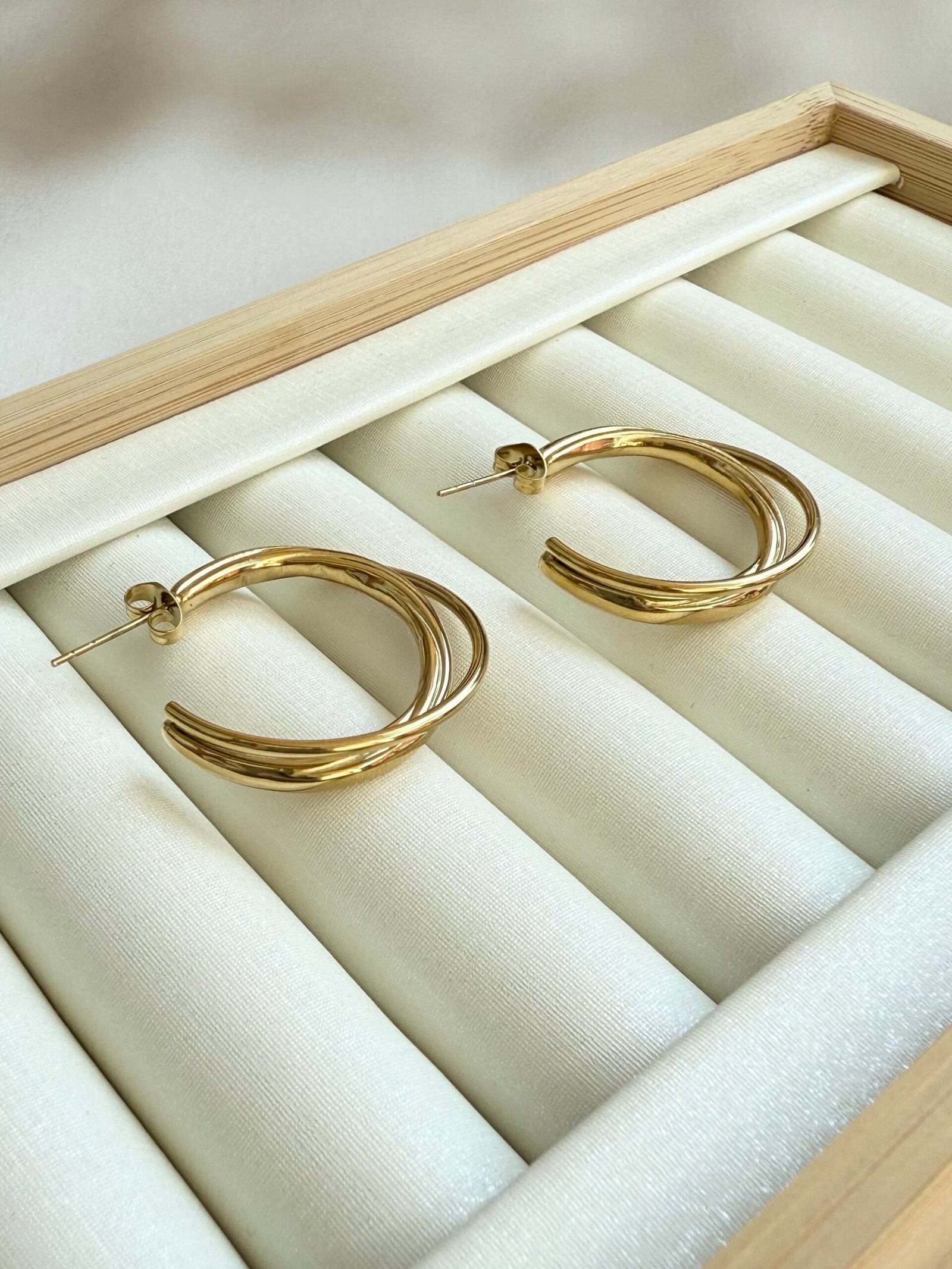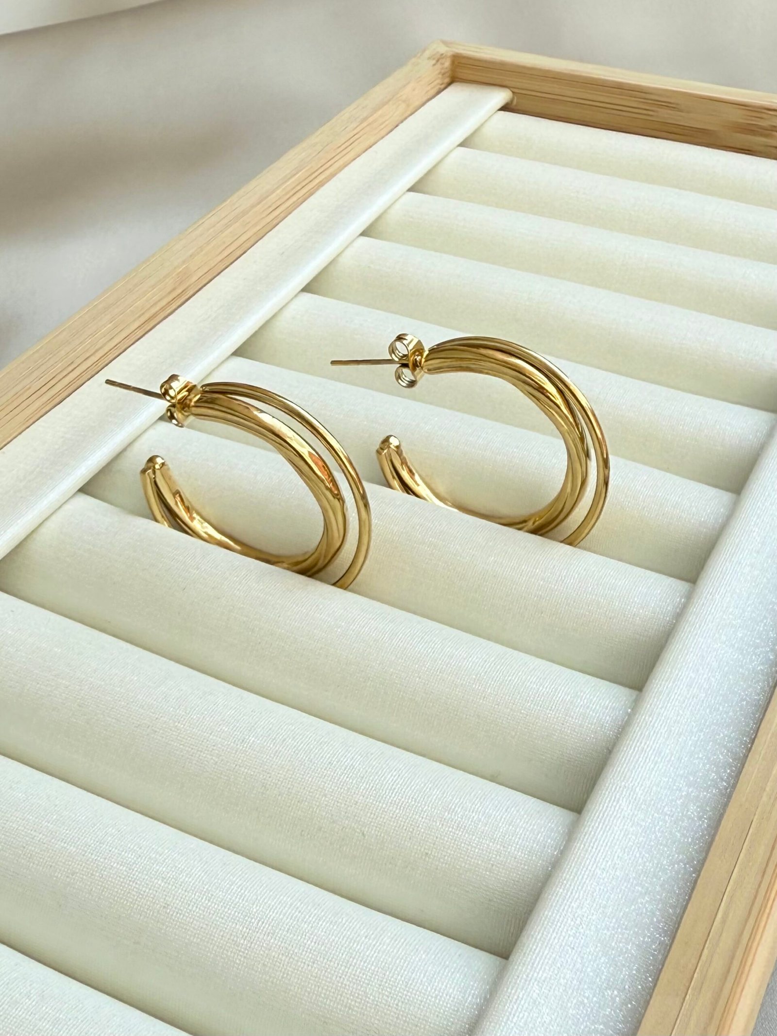 Stilski i upečatljiv dizajn – elegantne alke srednje veličine, dužine oko 3 cm, izrađene su od nehrđajućeg čelika s pozlatom. Lagane i udobne za nošenje, idealne su za dnevne kombinacije, ali i za večernje izlaske kada želite naglasiti svoj stil.