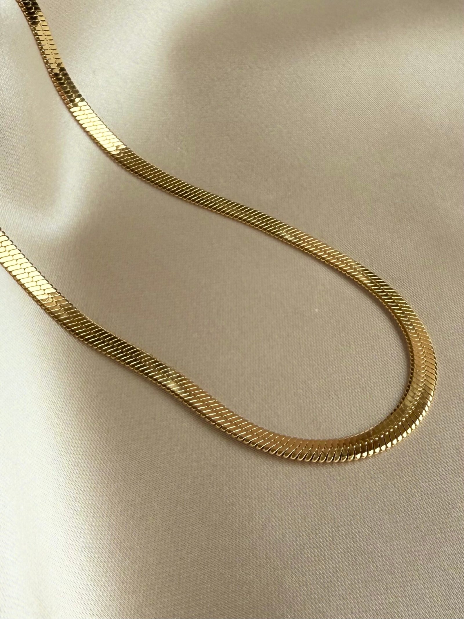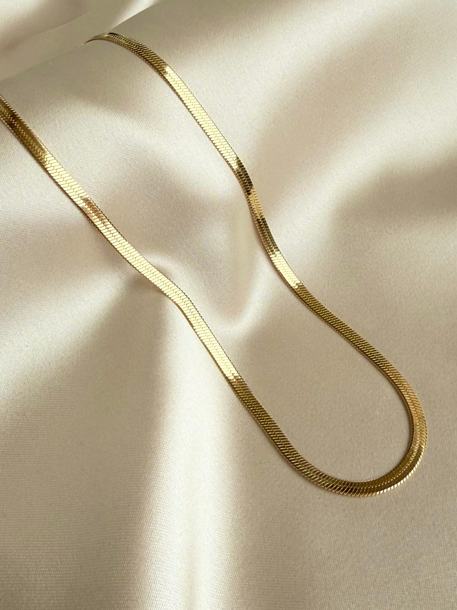 Ova ogrlica u stilu „zmije“ savršeno naglašava eleganciju i profinjenost. Lančić je gladak i sjajan, pa lijepo prianja uz kožu i ističe se bez obzira nosiš li ju samu ili u kombinaciji s drugim ogrlicama. Jednostavan, a opet poseban komad koji se uklapa u baš svaki outfit.